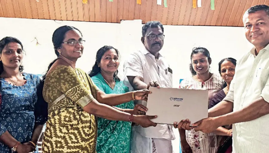 മണീട് ഗവ. എൽപി സ്കൂൾ സ്മാർട്ട് ക്ലാസിലേക്ക് റിനോക്സ് ഫൗണ്ടേഷൻ ലാപ്ടോപ് സമ്മാനിച്ചു. ചെയർമാൻ സ്റ്റെലിൻ പല്ലംകോടിൽനിന്ന് ഹെഡ്മിസ്ട്രസ് പ്രീന എൻ ജോസഫ് ഏറ്റുവാങ്ങി. യോഗം പഞ്ചായത്ത് പ്രസിഡന്റ് പോൾ വർഗീസ് ഉദ്ഘാടനം ചെയ്തു. മോളി തോമസ് അധ്യക്ഷയായി. ഷിബു വർഗീസ്, ഹെഡ്മിസ്ട്രസ് പ്രീനി എം ജോസഫ്, പി ആർ രാജി എന്നിവർ സംസാരിച്ചു.